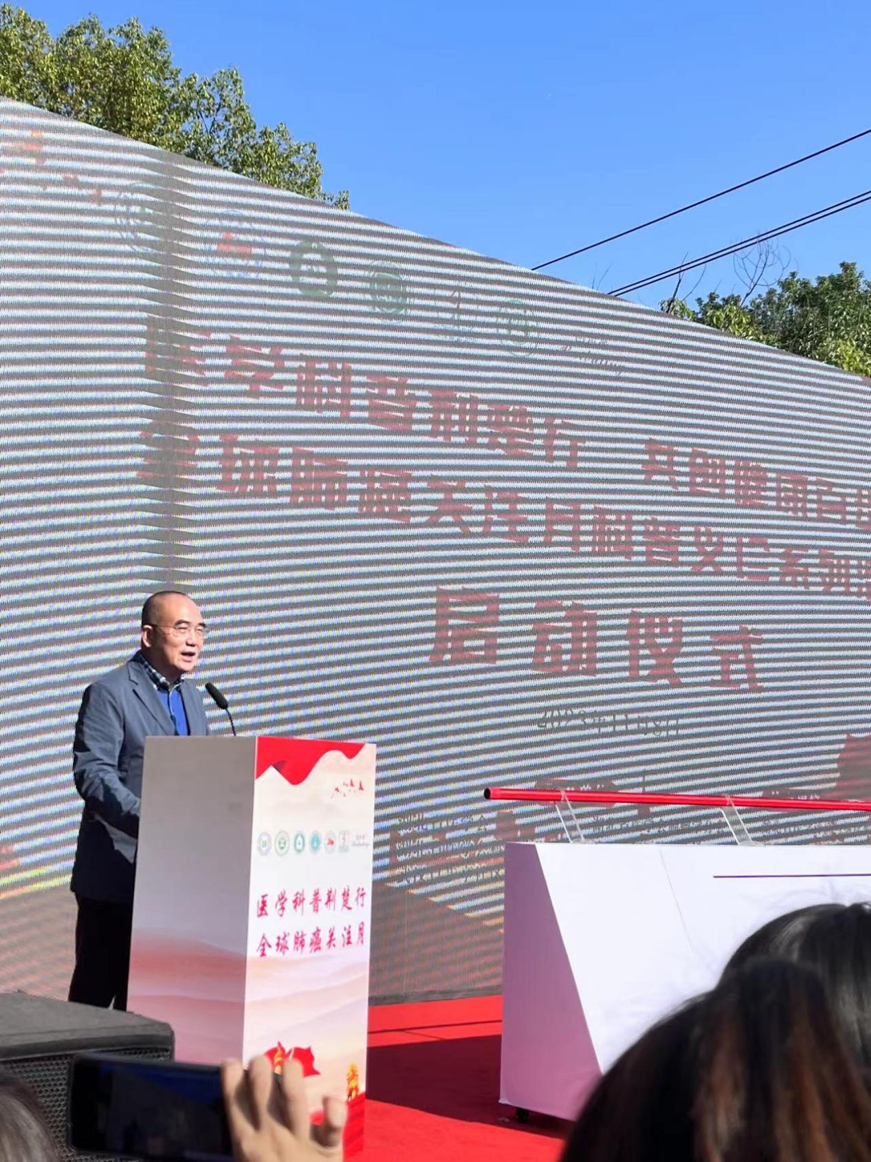 11月8日,湖北省医药卫生界六名院士及省部属、市属医院主要负责人在武汉市江岸区百步亭社区,联名倡议开展“医学科普荆楚行”活动。湖北省卫生健康委党组成员、副主任、公共卫生总师张定宇出席启动仪式并致辞。中国科学院院士陈孝平作为科普中国智库指导委员会专家致辞。启动仪式由湖北省医学会科学普及分会主委、协和医院党委副书记孙晖主持。